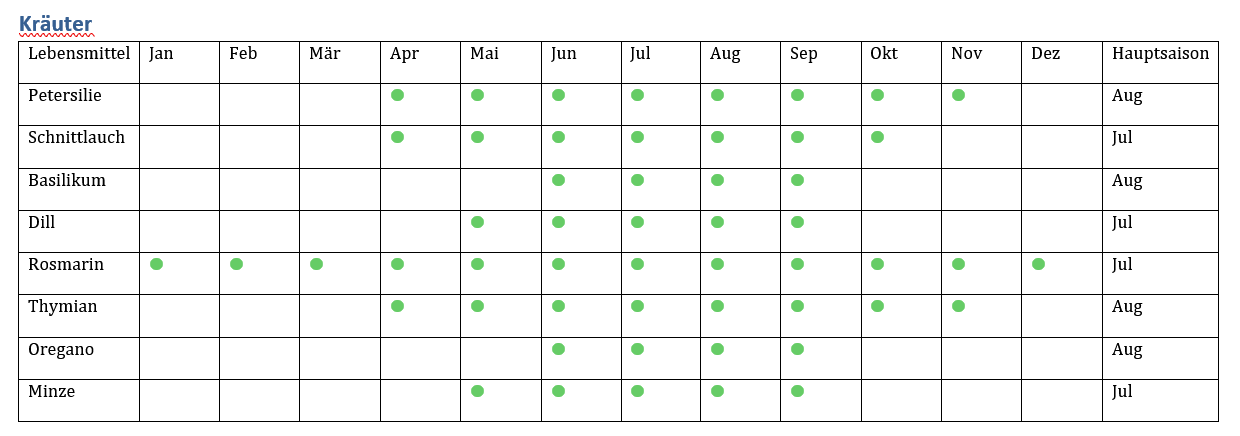 Steckbrief: Küchenkräuter