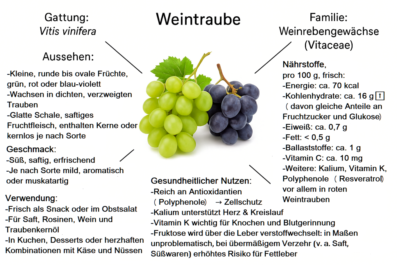 - 200 g Weintrauben (weiß oder gemischt, halbiert, entkernt)